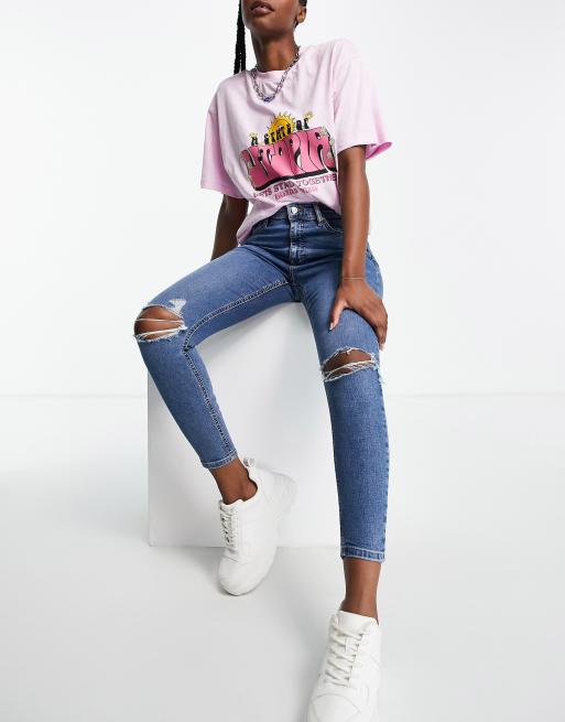 Topshop jamie jeans clearance blue, Topshop Jamie jean with rip in mid blue ASOS clearance