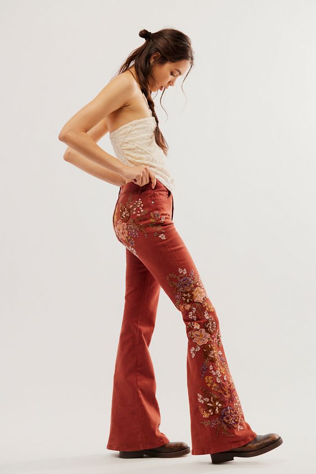 Free people embroidered clearance jeans, Driftwood Farrah Embroidered Cord Flare Jeans Women denim jeans clearance