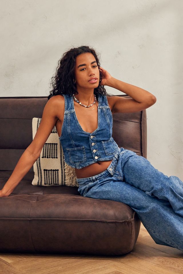 Free people denim clearance vest, Free People Rider Denim Vest Suit clearance