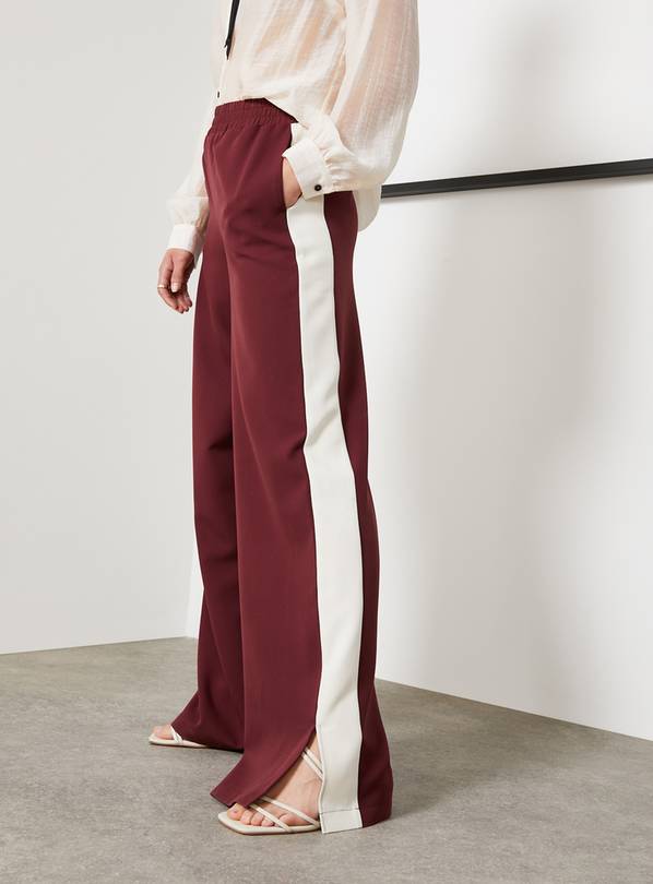 Buy For All the Love Burgundy Printed Side Stripe Wide Leg Trouser