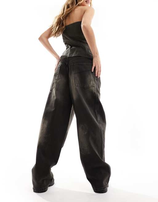 COLLUSION x015 low rise super baggy jeans in oil wash