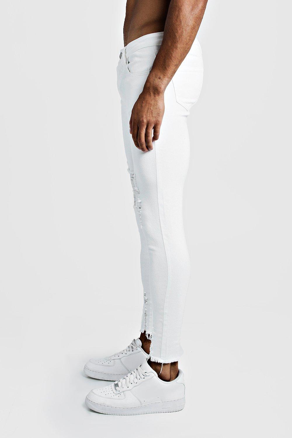 White High Waist Distressed Hem Super Stretch Skinny Jeans