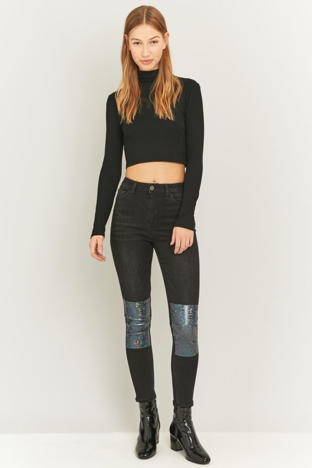 BDG Pine High Waisted Metallic Knee Black Super Skinny Jeans