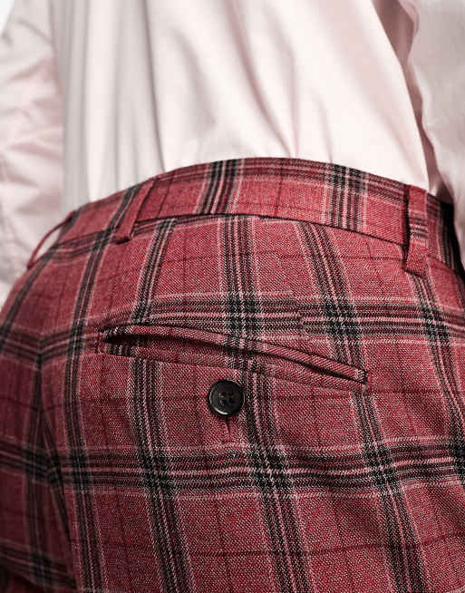Harry Brown skinny cropped suit trousers in red tartan ASOS