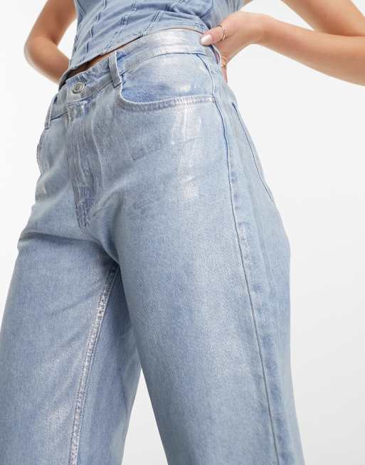 Silver clearance mom jeans, Pull Bear metallic jean in silver clearance
