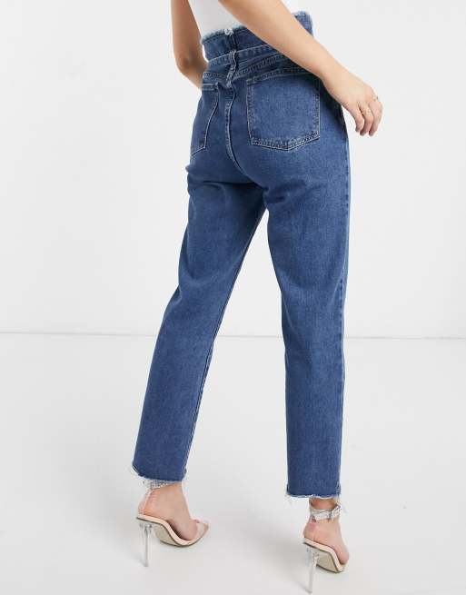 I Saw It First mid wash paperbag waist boyfriend jeans