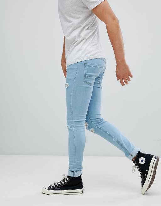 Soul Star Skinny Stretch Rip Jeans in Blue