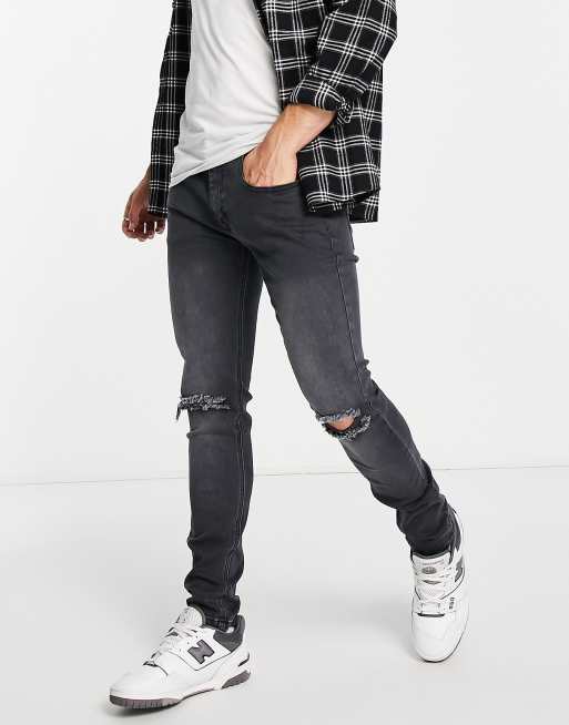 Soulstar skinny fit ripped jeans in washed black
