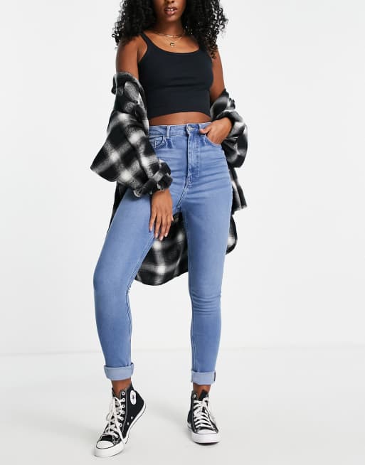 Pieces Flex super high waisted skinny jeans in light blue wash