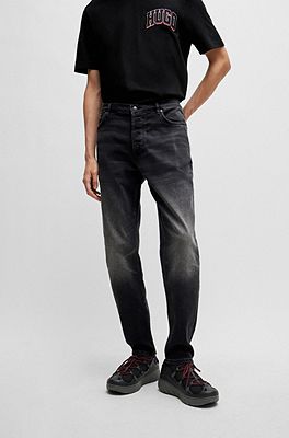 Hugo boss black clearance label jeans, HUGO Tapered fit jeans in black comfort stretch denim clearance