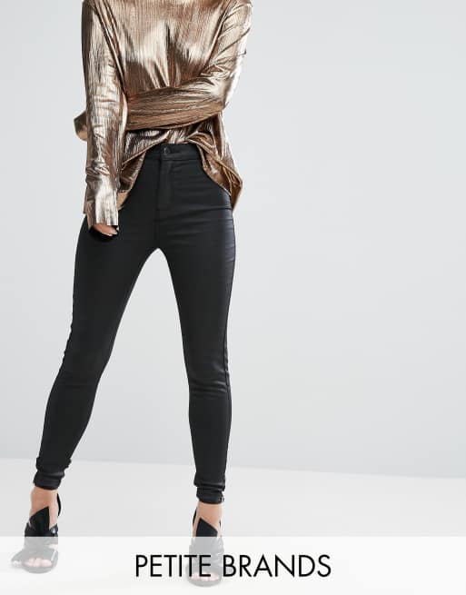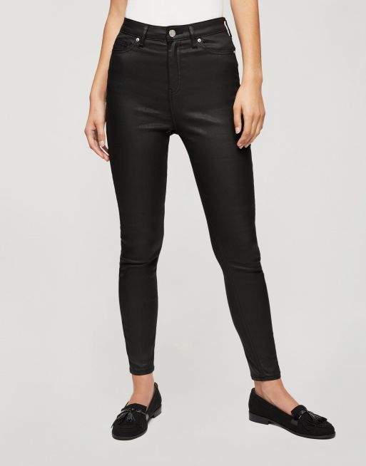 Miss Selfridge Lizzie coated high waist skinny jeans in black ASOS