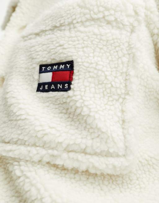 Tommy Jeans solid logo sherpa overshirt in white ASOS