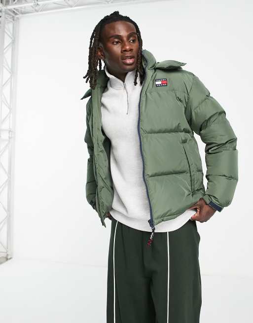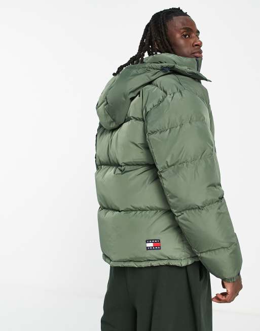 Tommy jeans down puffer clearance jacket detachable hood in green
