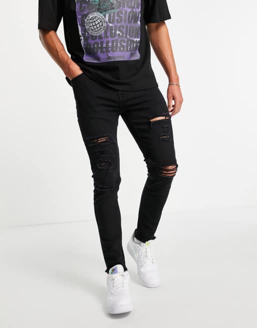 ASOS DESIGN skinny jeans in black with heavy rips and raw hem ASOS