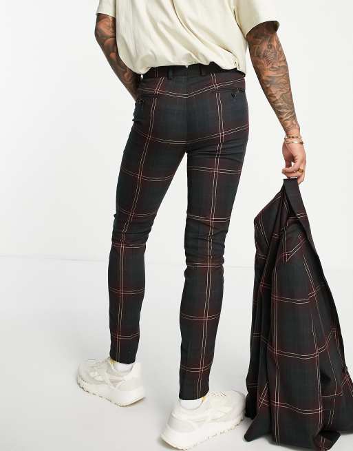 Men s Super Skinny Red Check Trouser Boohoo UK