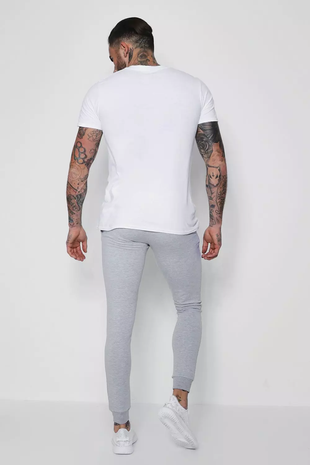 Mens Super Skinny Joggers Slim Fit Sweat Pant Fleece Jogging Gym