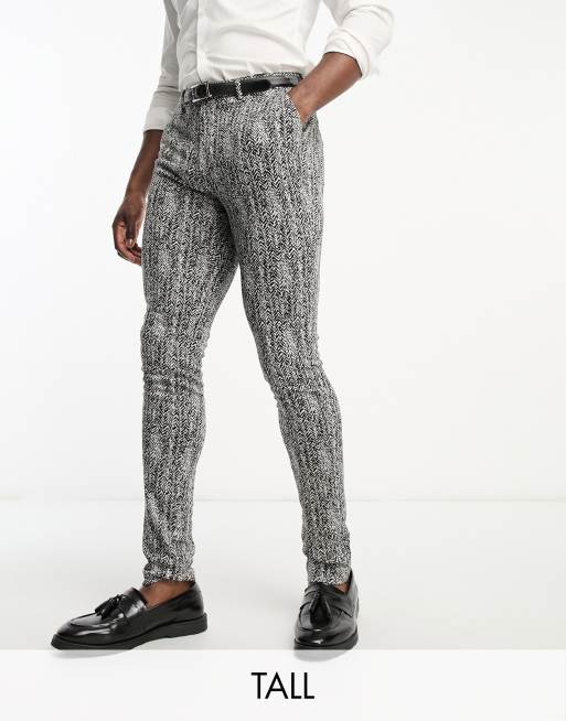 Devils Advocate Tall skinny suit trousers in black herringbone ASOS