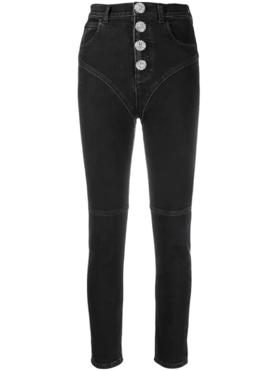 Alessandra Rich High Waisted Crystal Button Stirrup Jean In Black