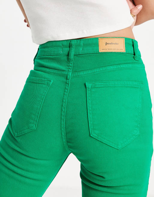 Emerald green skinny clearance jeans, Stradivarius Tall slim flare jean with split detail in green ASOS clearance