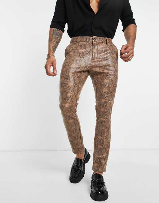 Skinny snake print clearance trousers, Women s Snake Print Faux Leather Trousers Ladies Skinny Stretch clearance