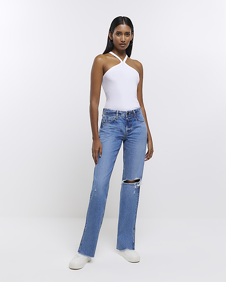 Ripped clearance back jeans, Blue ripped straight leg jeans River Island clearance
