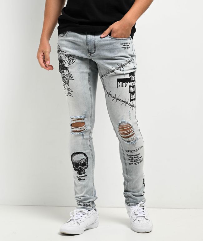 Zumiez clearance ripped jeans, Ninth Hall Rogue Tapered Printed Smoke Skinny Jeans Zumiez clearance
