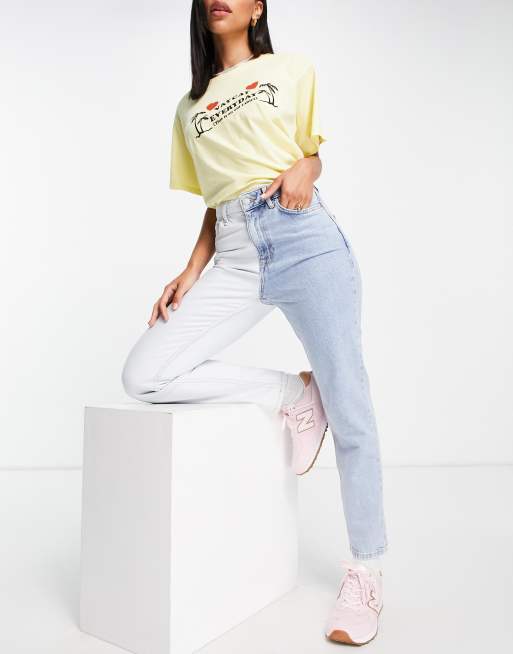 Two tone mom clearance jeans, ONLY Blue Two Tone High Waist Mom Jeans clearance