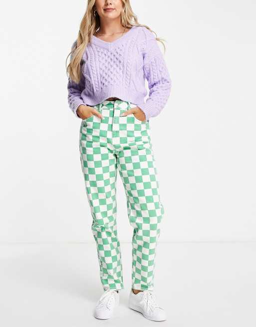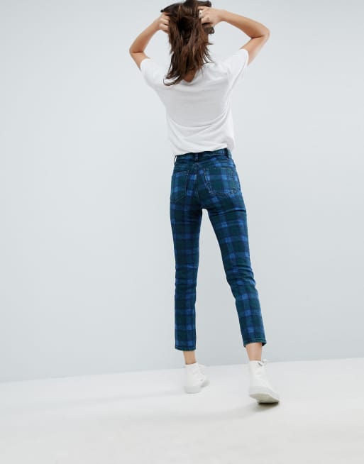 ASOS DESIGN Farleigh high waist slim mom jeans in check print ASOS