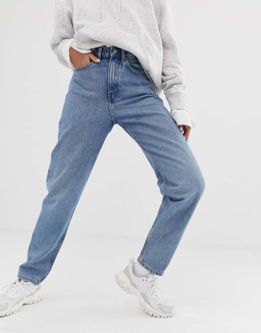 Weekday Lash extra high waist mom jeans in hanson blue MBLUE