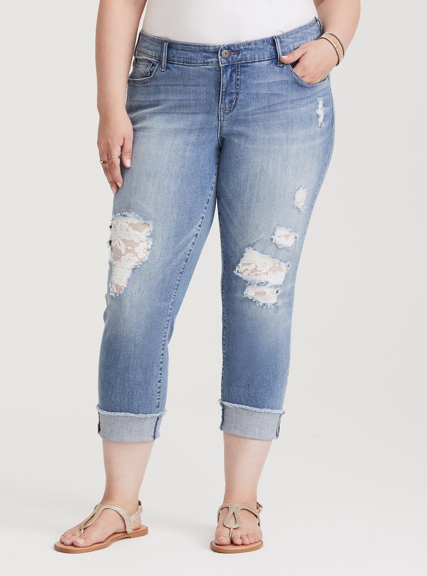 Torrid distressed boyfriend clearance jeans, Plus Size Perfect Boyfriend Ankle Premium Stretch Mid Rise Jean clearance