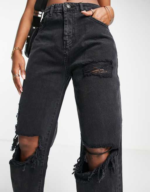 Misses clearance boyfriend jeans, DTT boyfriend jeans with knee rips in washed black clearance