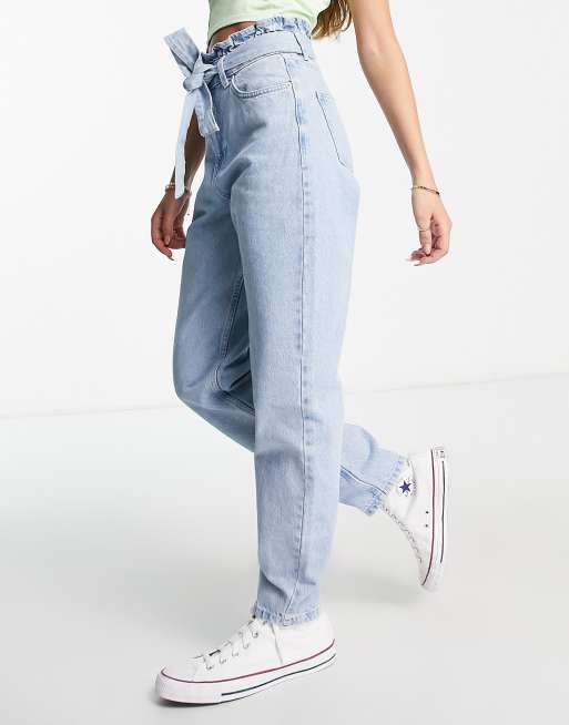 Daphne Tie Waist Mom Jeans in Blue ikrush