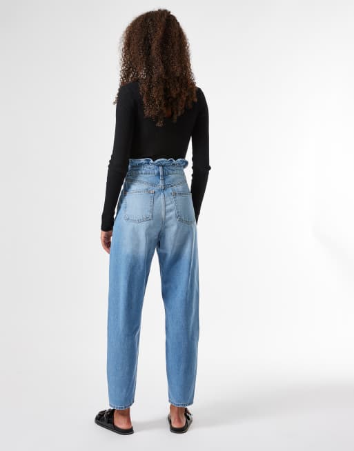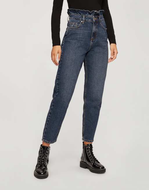 Miss Selfridge mom jeans with frill detail in blue