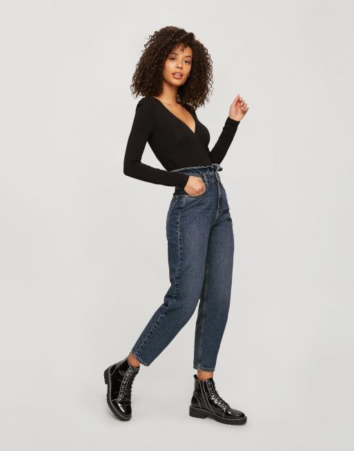 Miss Selfridge mom jeans with frill detail in blue ASOS