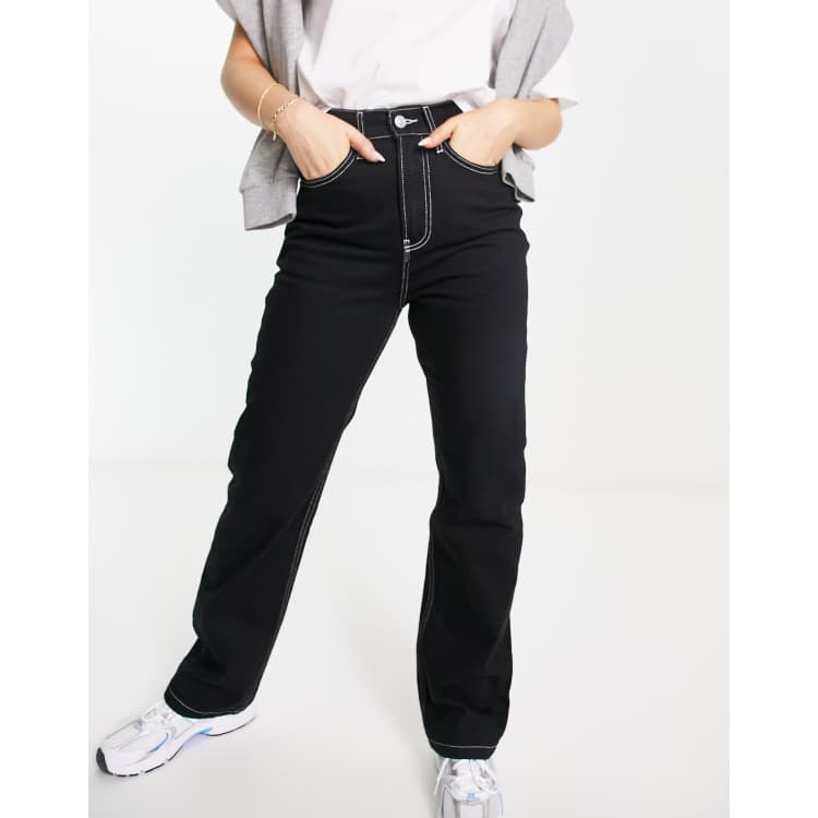 ASOS DESIGN easy straight jean in black with contrast white stich