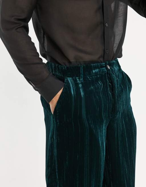 ASOS DESIGN wide trousers in crushed velvet in deep green