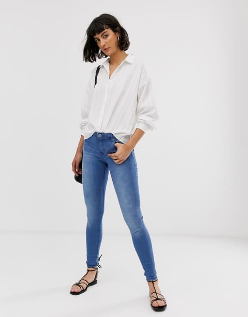 Only Power Mid Waist Push Up Skinny REA2981K Jeans Blue Dressinn