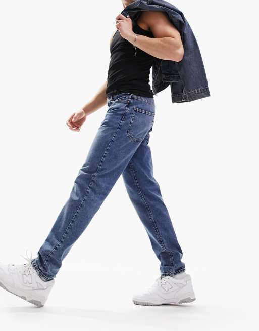 ASOS Tapered Jeans In Mid Blue