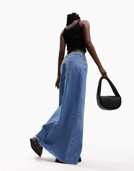 ASOS DESIGN Gonna lunga di jeans svasata lavaggio blu medio ASOS