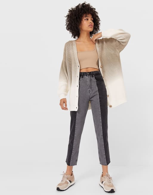 Stradivarius straight leg contrast two tone jeans with raw hem in black
