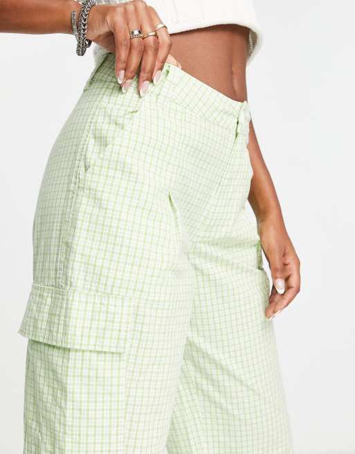 ASOS DESIGN oversized cargo trousers in bright green check ASOS