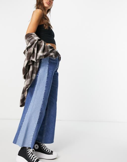 Stradivarius 90s wide leg patchwork jean in medium blue