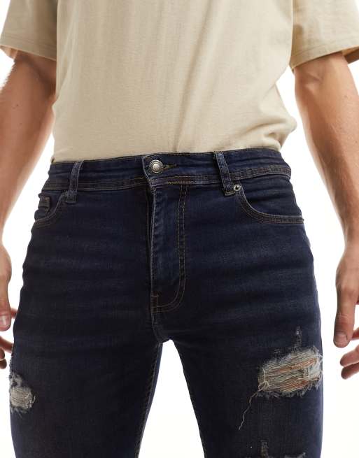 DTT stretch skinny fit ripped jeans in distressed dark blue