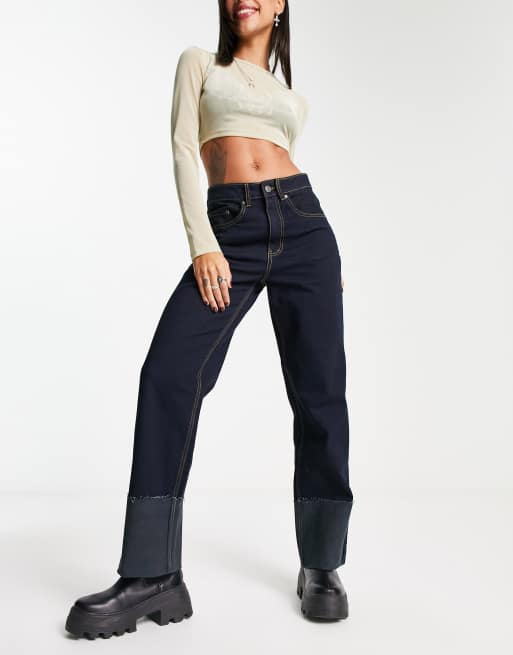 Object deep cuff roll up jean in dark blue