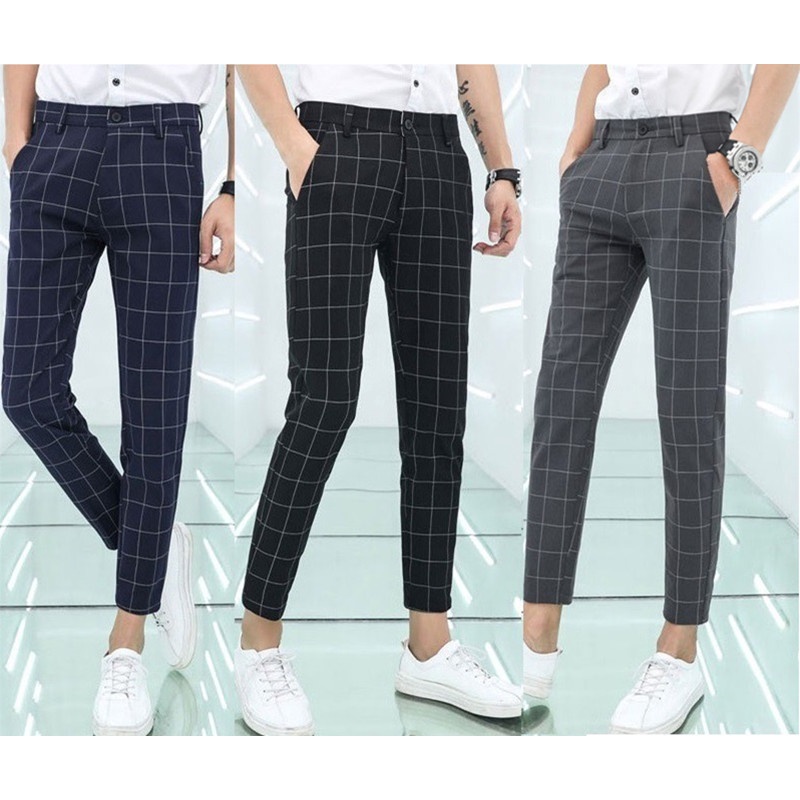 Size 28 36 Men Plaid Ankle length Pants Casual Fashion Korean