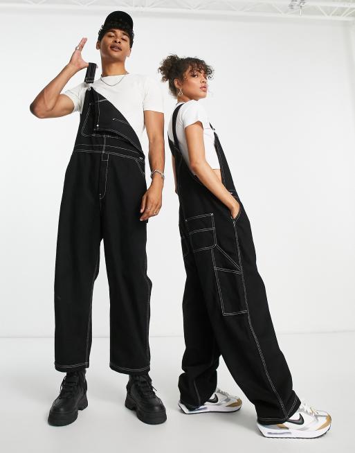 COLLUSION Unisex oversized denim dungarees with contrast stitch in black