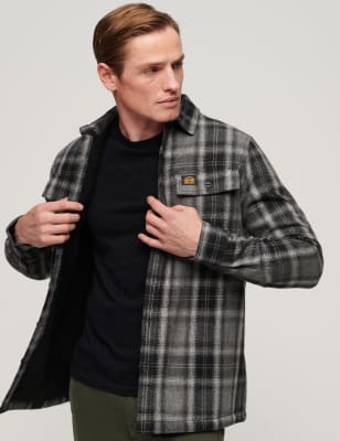 Wool Blend Check Overshirt Superdry M S