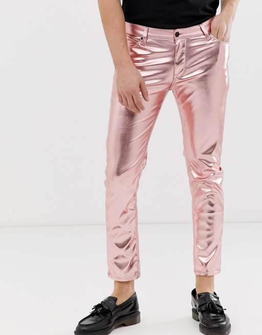 ASOS DESIGN skinny coated leather look jeans in metallic pink ASOS