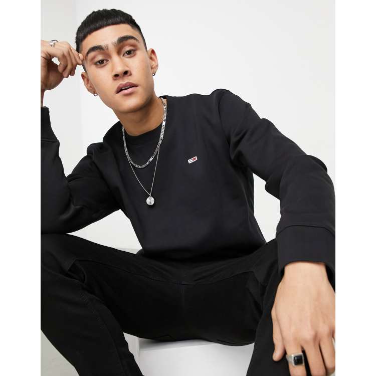 Tommy Jeans crew neck logo sweatshirt in black ASOS