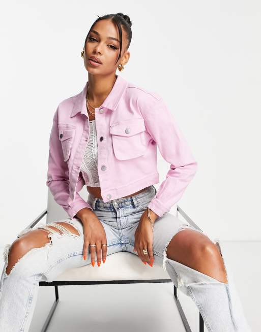 Pink jacket and clearance jeans, Parisian cropped denim jacket in pink clearance